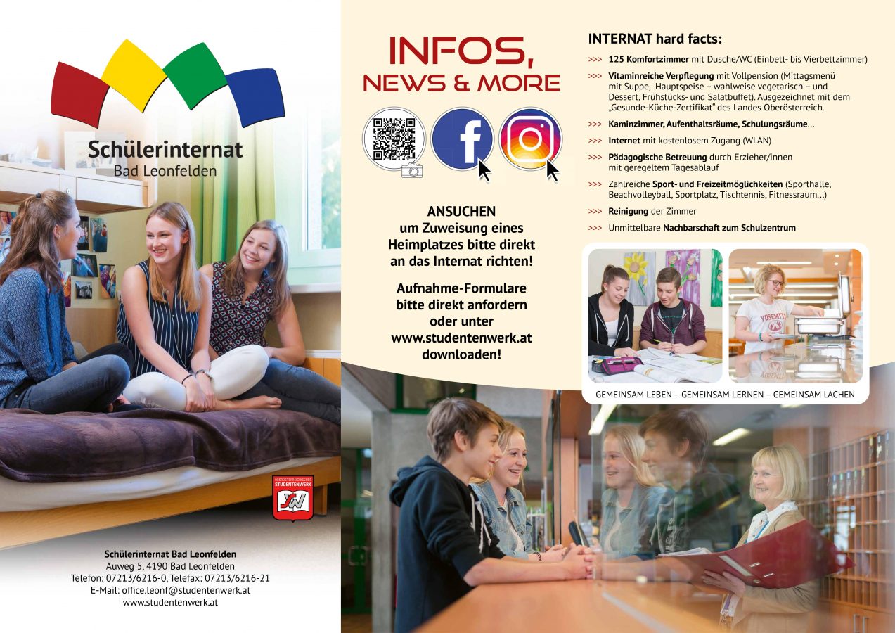 - Probeschlafen im Internat Bad LeonfeldenDu möchtest Internatsluft schnuppern? Mit Internatsschülern den echten Internatsalltag erleben? Dann melde dich einfach telefonisch an: 07213/6216. Du kommst um 16 Uhr zu uns, erlebst